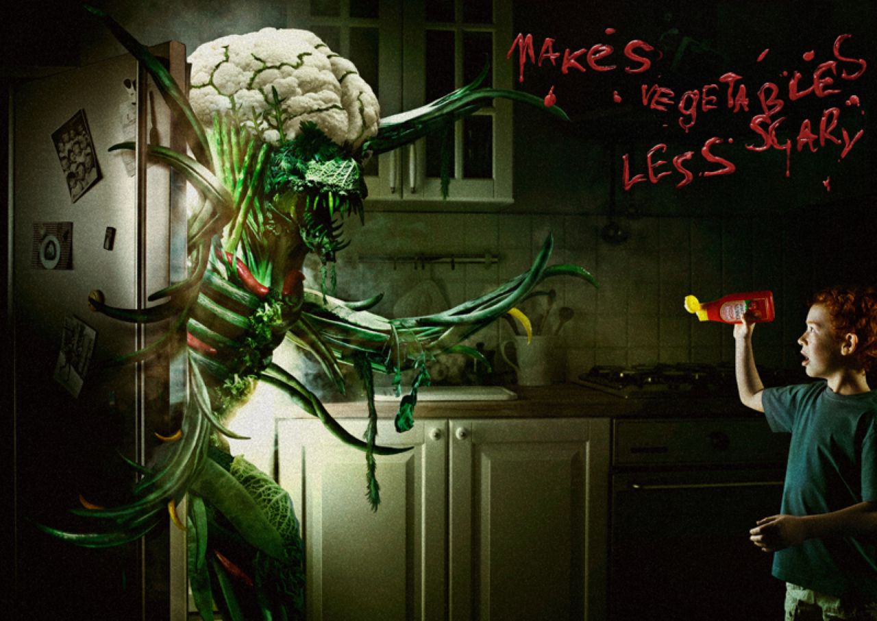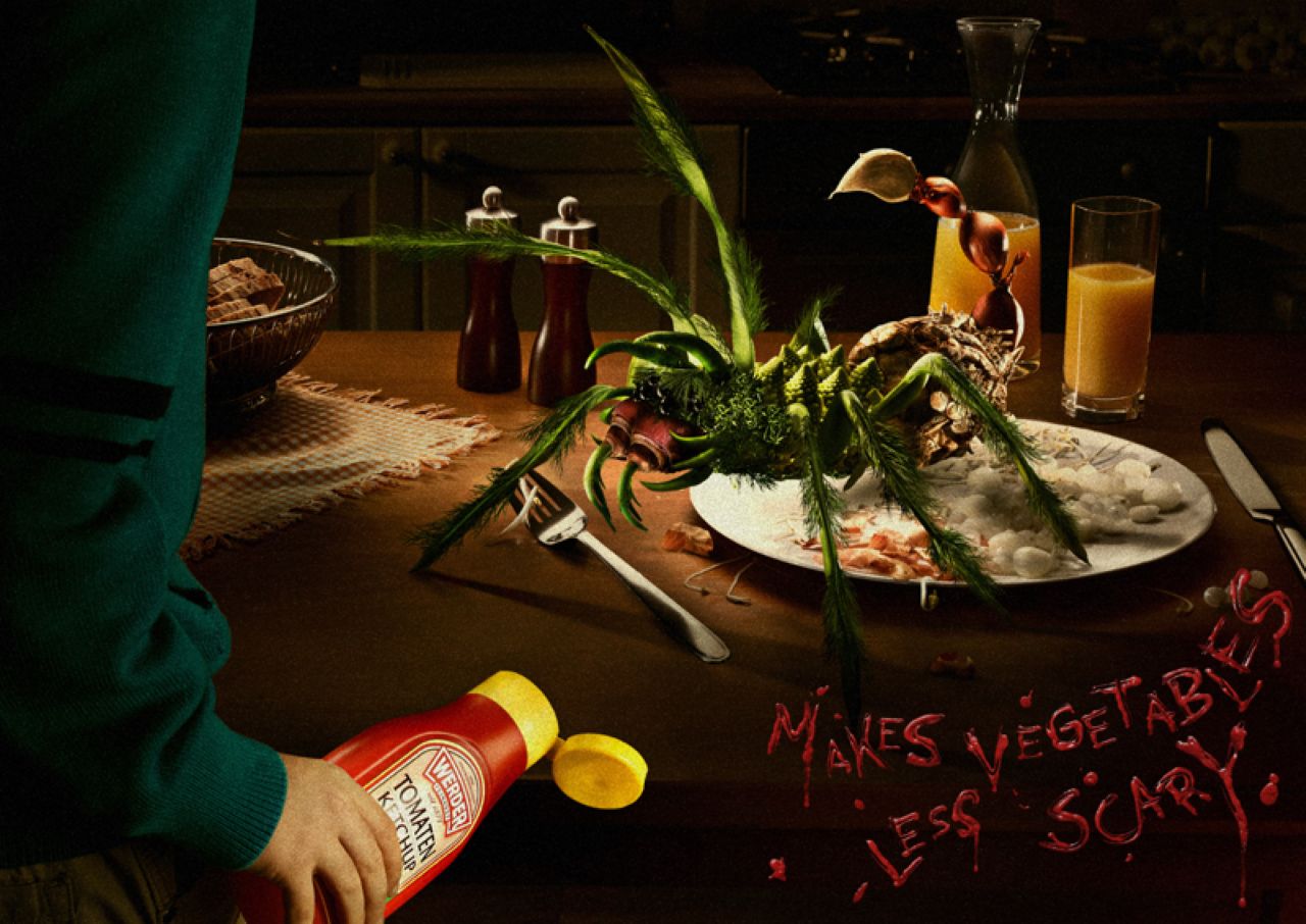 “Haga los vegetales menos amenazadores. Werder Ketchup.”